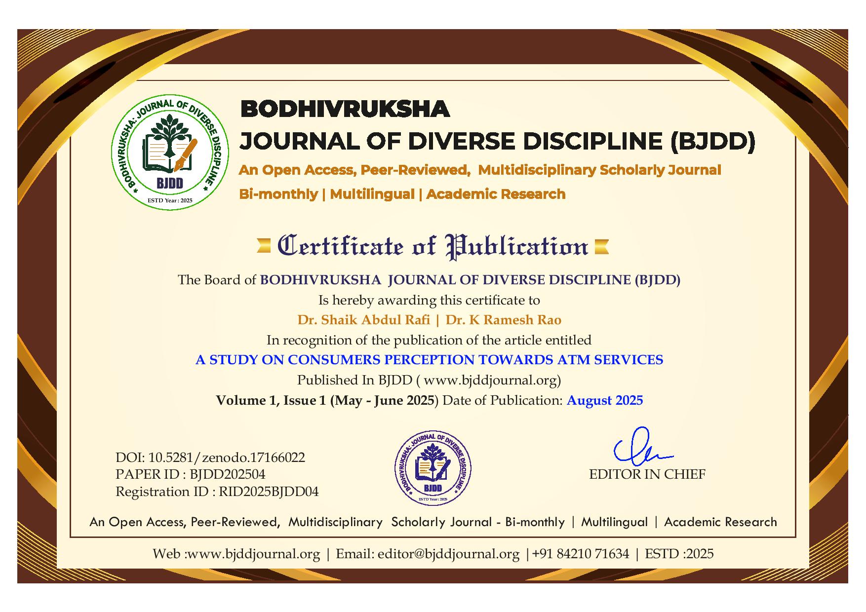 Despite their rapid proliferation, certain challenges continue to influence customers’ perceptions—such as concerns about transaction security, service charges, and limited awareness of various ATM features. The present study seeks to analyze how ATM services affect customer behavior and satisfaction levels. Primary data were gathered using a structured Google Form questionnaire administered through a convenient sampling approach. The study sample comprises active ATM card users.